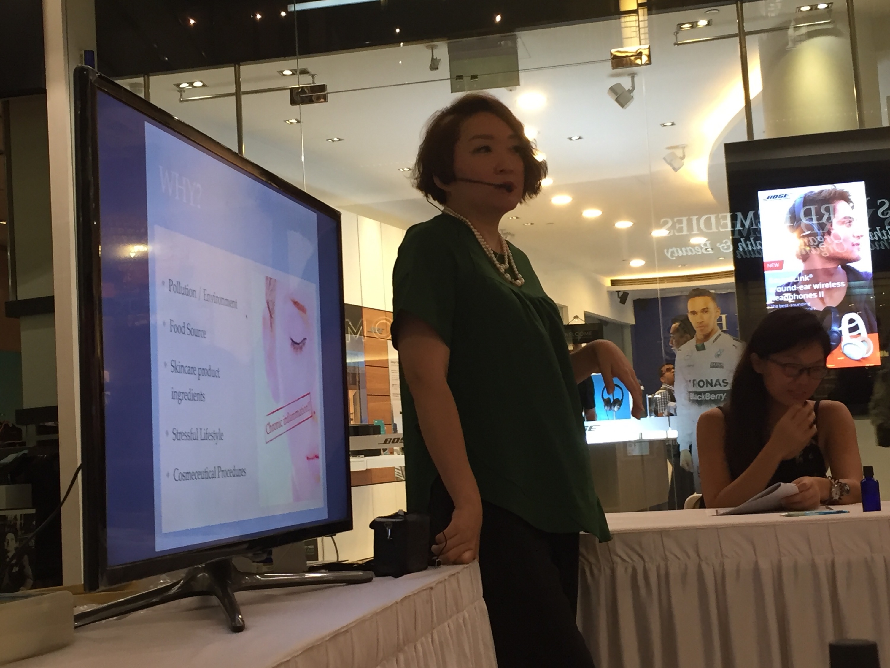 Ms Gloria Yuan, a certified aromatherapist talked about her previous skin problems and on how essential oil helps to fix her sensitive skin. Essential oil helps to regulate the lymphatic drainage, and for a better hormonal balance.