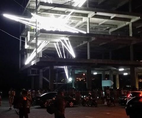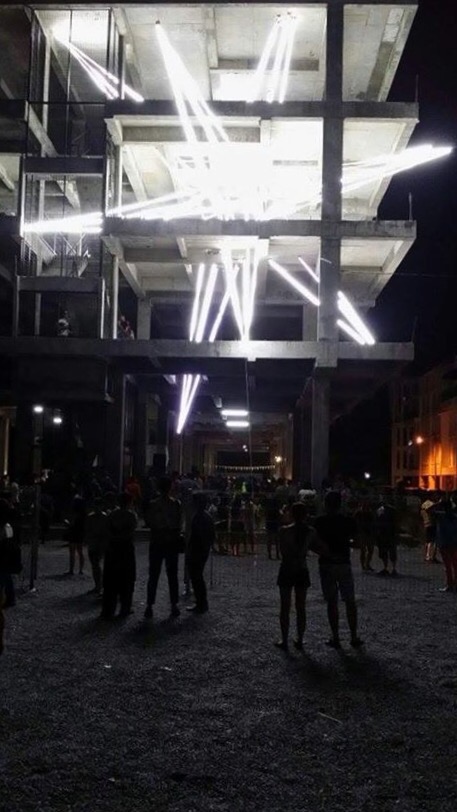 7th November 2015- A showcase in Penang, Malaysia. An impressive presentation of flourescent rods piercing through the concrete infrastructure.