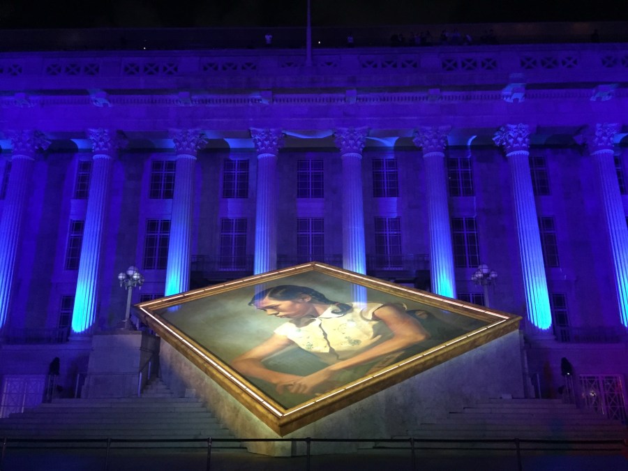 Outside the Gallery, a ten minutes special performance which starts at 8pm, 9pm and 10pm. Video Projection Director: Milosh Luczynski. An original commission by National Gallery Singapore.