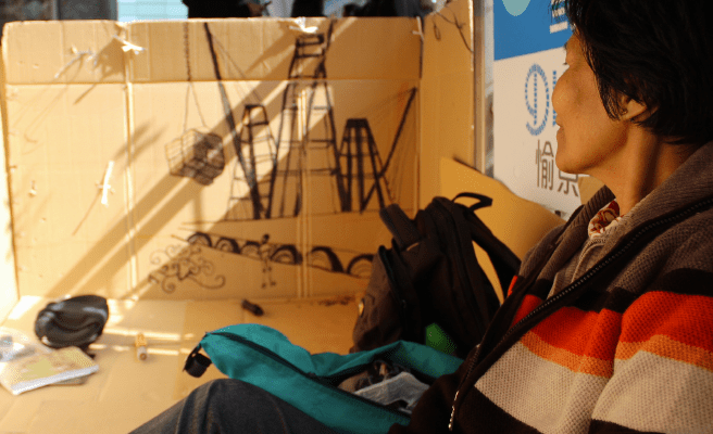As part of the Film sector, curated by Li Zhenhua, Wulia’s new film Proposal for a Film: Within the Leaves, a Sight of the Forest (2016, HD, colour, stereo, 25’30”) poetically plays with ideas of fractals, cycles and (re)generations by criss-crossing between the actual cardboard waste route in Hong Kong – primarily spanning the Hong Kong island coastal strip from Sheung Wan to Heng Fa Chuen – and an imagined future-past in Mars. The six short episodes of the film chronicle the artist’s journey across the nodes in the route. The film premieres in the form of a ‘proposal’ in the art fair that is one of these nodes, described in Episode Four, and Wulia continues filming during the art fair.