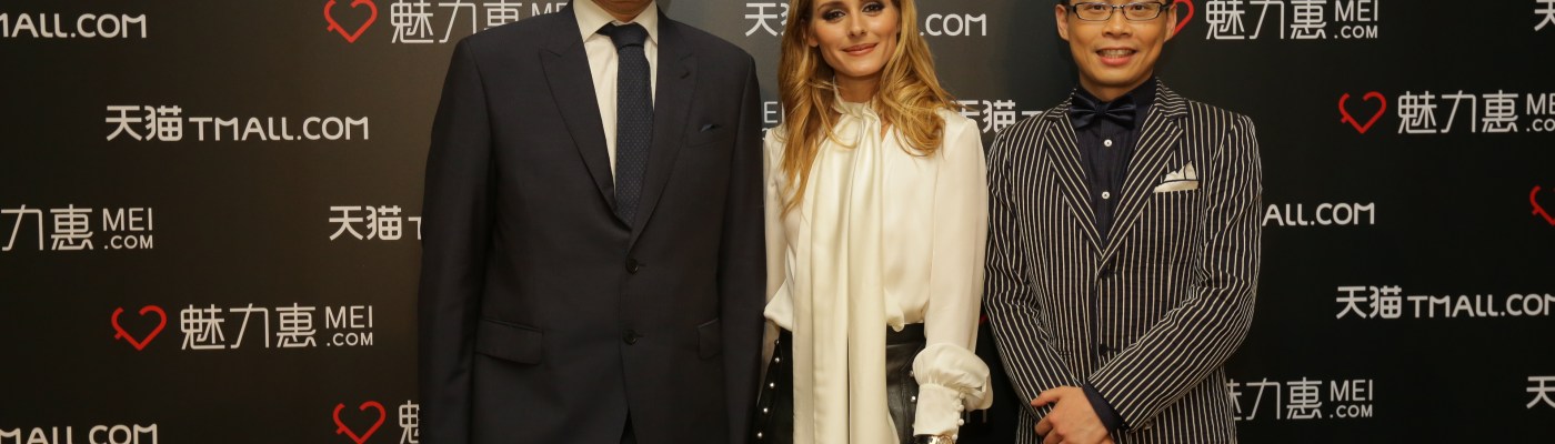 From left to right: Mei.com CEO Thibault Villet with Olivia Palermo and Mei.com President Seamon Shi