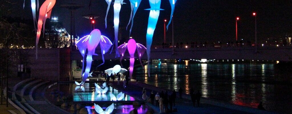Courtesy images from Porté par Le Vent at the Lyon Light Festival.