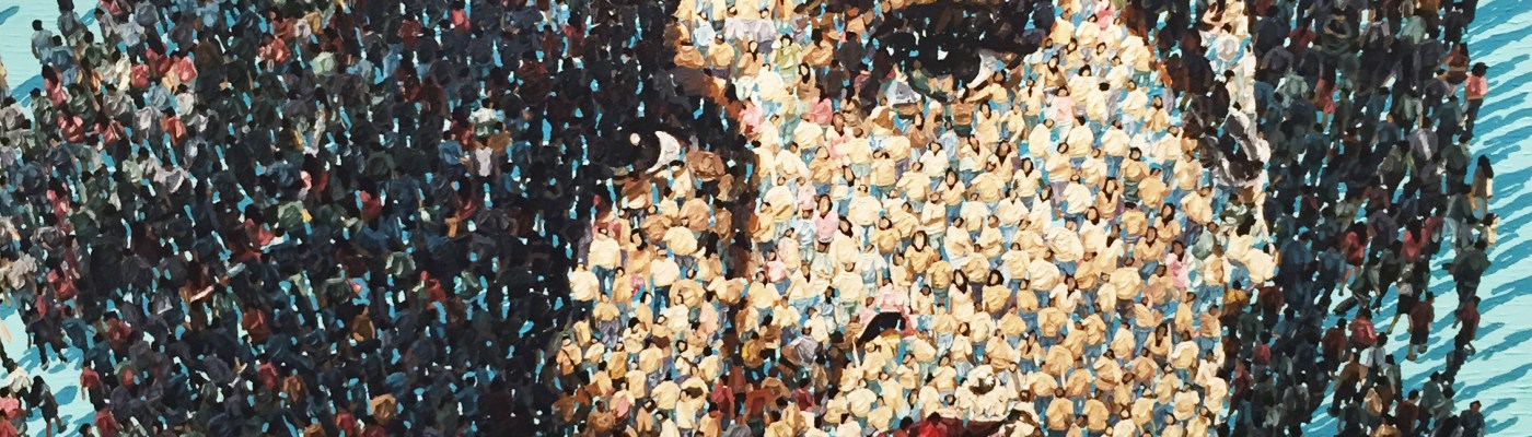Syaiful’s particular fascination with celebrities and prominent figures is derived from the conviction that they are the “‘nodes’ of various things – persona, popularity and even power, all of which are manifested in every human subject. It is only upon a more conscientious scrutiny of Syaiful’s paintings that one might truly catch a glimpse of his artistic inventiveness. It becomes clear that his portraits are composed of hundreds – even thousands – of minuscule, faceless human figures. A peremptory glance at any of Syaiful’s paintings is enough to trick the viewer into thinking that these diminutive people are nothing more than an exceptionally pronounced attempt at pointillism. The scrupulous inclusion of this anonymous crowd is not merely a clever contrivance, as it also serves as an analogy to the roots of popular culture. Amidst our glorification and idolatry of the sought-after crowd, it is easy to forget that it is the power of our favor that holds them aloft. Through his precise brushstrokes that emphasize just the right amount of colors and shadows in the appropriate places, Syaiful leads us to the realization of the diverse distribution of power between and amongst people from all factions of society.