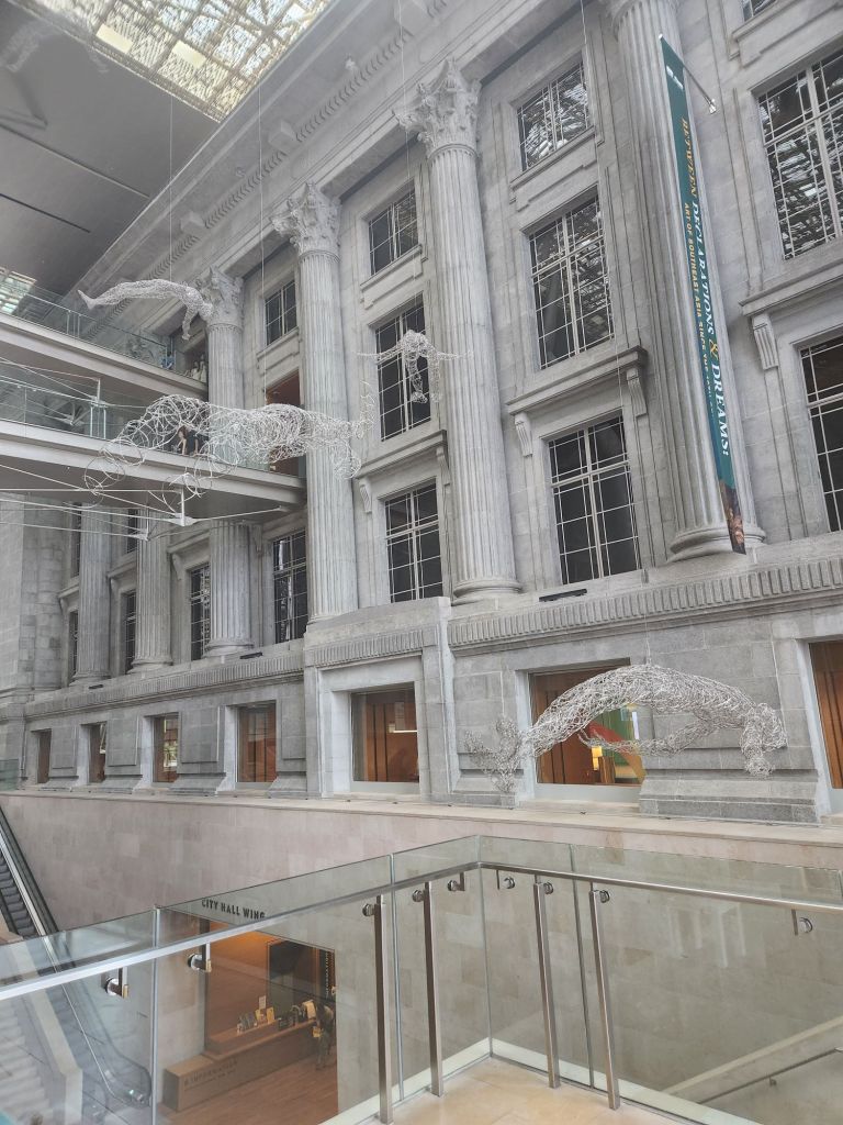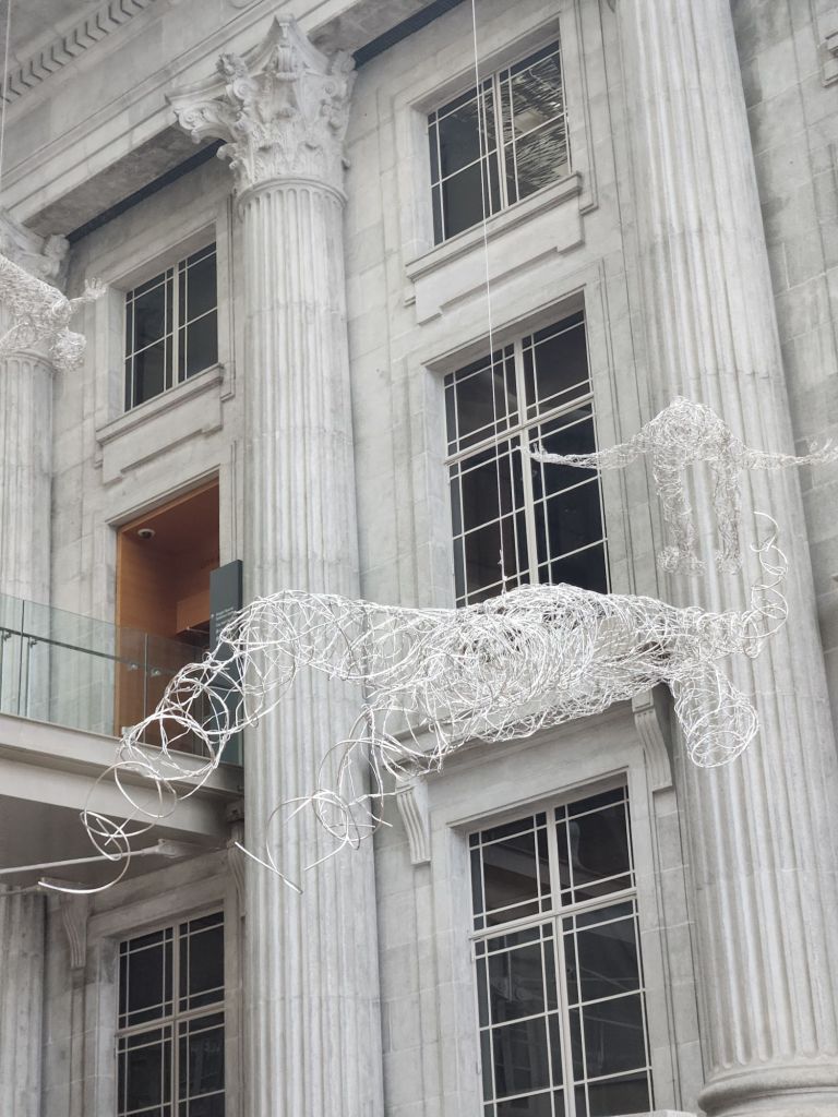 Visitors will find eight life-sized human figure wire sculptures located between the old city hall building and the old supreme court.