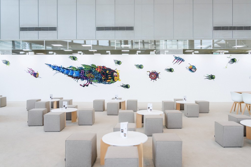 Installation view of the commissioned artwork by the UBS Art Collection in the UBS VIP Lounge at Taipei Dangdai 2024.Eko Nugroho, details of Guarding Sunrise in Mind, 2023, embroidered painting, variable dimensions, 13 parts. UBS Art Collection. © Eko Nugroho瑞銀典藏廳現場展出瑞銀藝術藏品委托作品。艾柯·努格羅荷,《養護心中的晨曦》(局部),2023年,刺繡畫,尺寸可變,十三件。瑞銀藝術藏品。