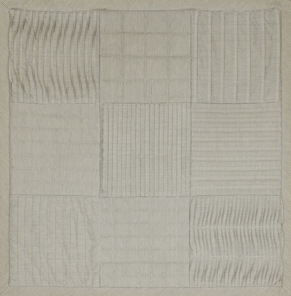 - Eng Tow. Grey Shadows. c.1970s. Quilted stitching on cotton ticking. Collection of National Gallery Singapore. © Eng Tow