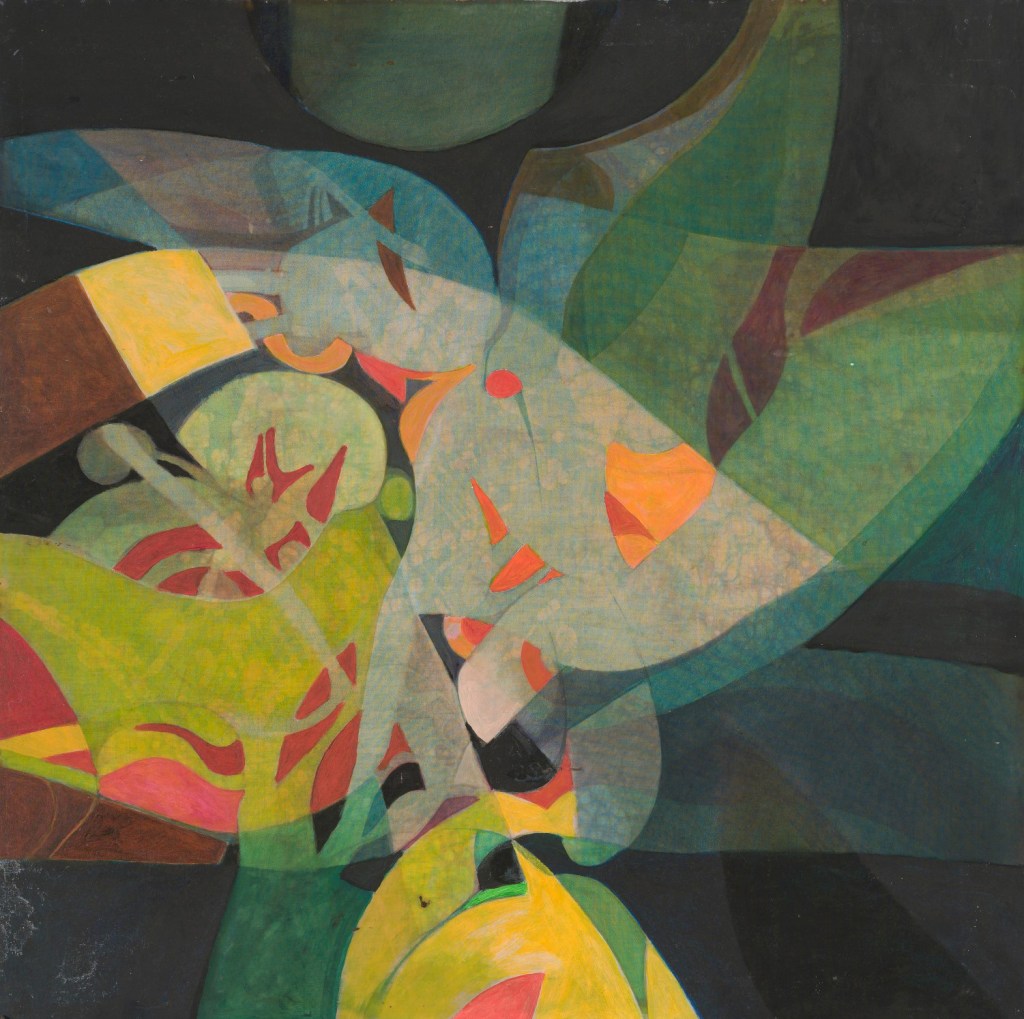 - Jaafar Latiff. [Title unknown]. Undated (c. 1976). Fabric dye and acrylic on canvas. Collection of National Gallery Singapore. © Family of Jaafar Bin Abdul Latiff